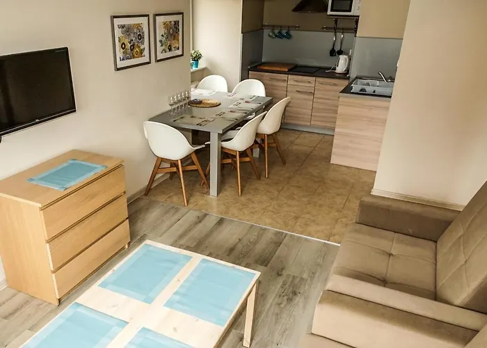 Az ingatlan biztosít felszereltséget önellátáshoz, például teakonyhát, valamint vendégeinek kültéri étkezőhelyet kínál, ahol elfogyaszthatják ételeiket. A Cukiernia Słodkie Klimaty európai ételeket kínál, és hozzávetőlegesen 300 méterre fekszik. A Dworzec PKS buszpályaudvar csaknem egy 5 perces autóútra van az apartman területétől.